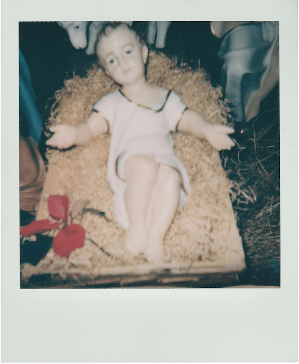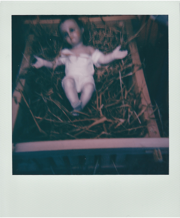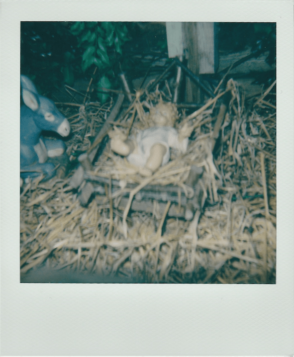 A Polaroid series documenting Baby Jesus figurines around my hometown in the Irish midlands.