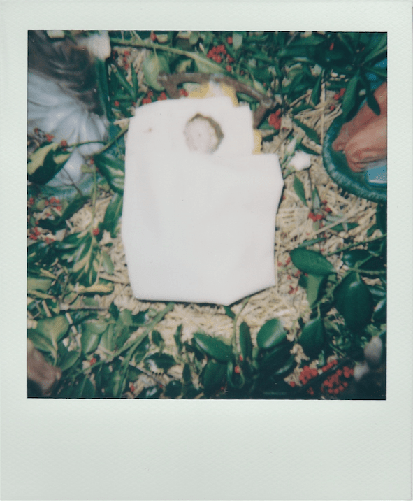 So I paid flying visits to musty old churches and pulled over at outdoor nativity ‘cribs’ on the sleepy main streets of small midlands towns, with my polaroid camera in the passenger seat. It belonged to my parents, and is almost as old as I am. As a child I was enamoured by little ceramic nativity characters. My own family along with countless Irish cultural Catholics take their nativity sets down from the attic with the rest of their Christmas decorations every year, wrapped up in old newspaper. Jesus isn’t supposed to be placed in the crib until the 25th of December and the three kings can only appear on the 6th of January. There is a bit of a ritual attached.